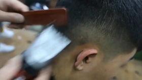 视频里,我们可以看到,理发师在给男生理发时,手法略显生疏。尤其是在剃两侧头发时,剪刀似乎有些“手抖”,导致两侧头发长度不一。而中间的长发部分,也因为理发师的失误,变得参差不齐。